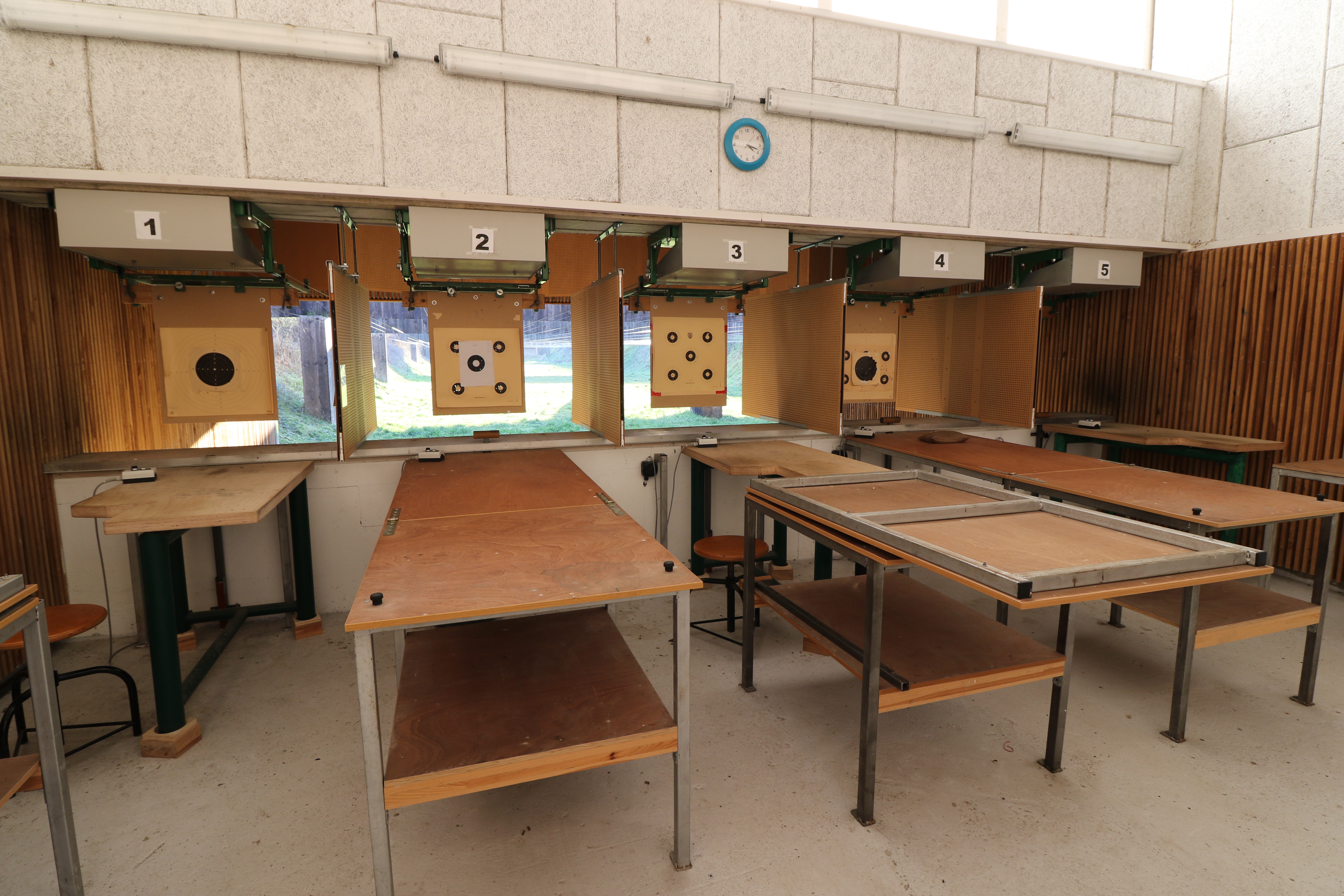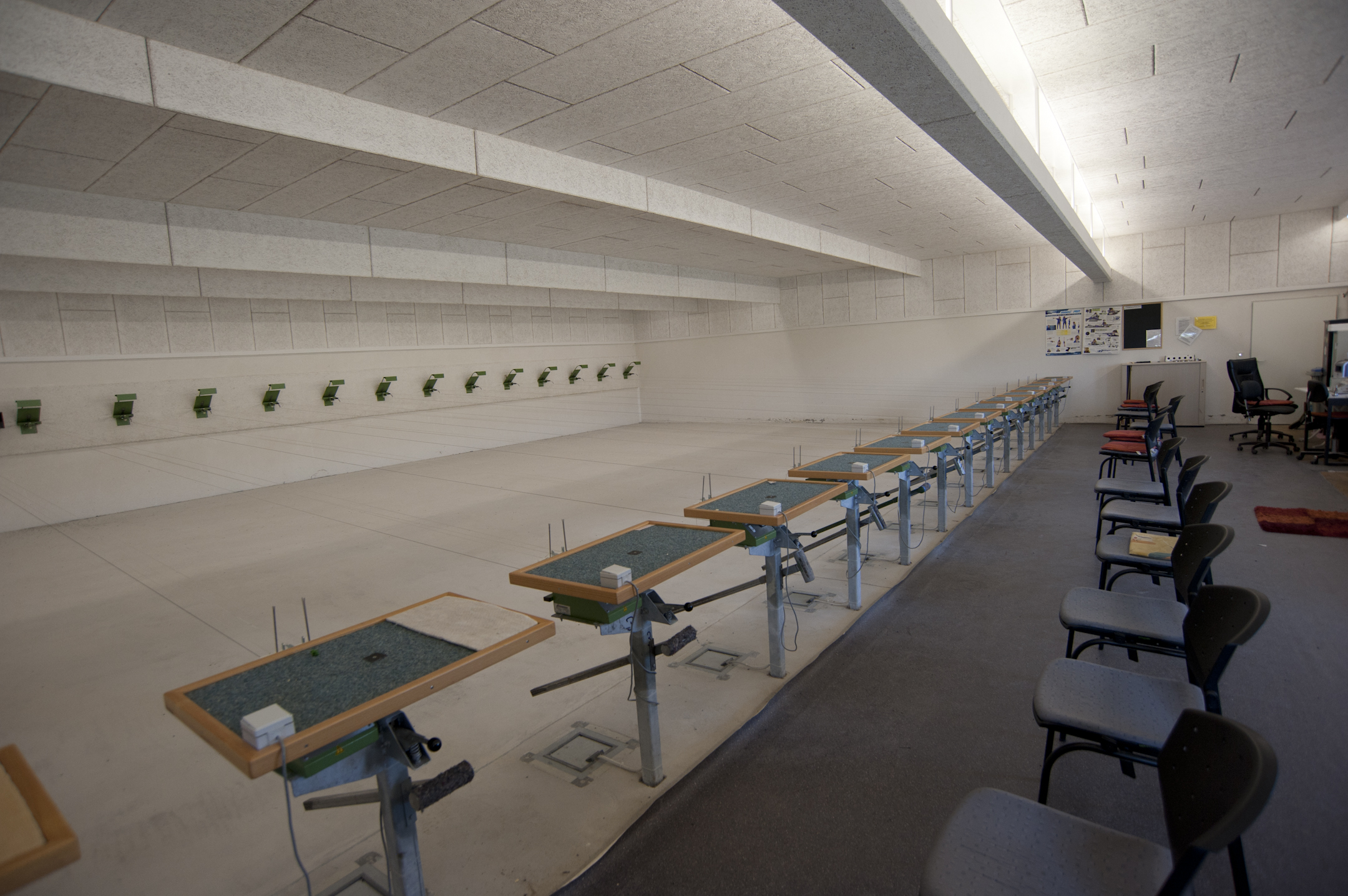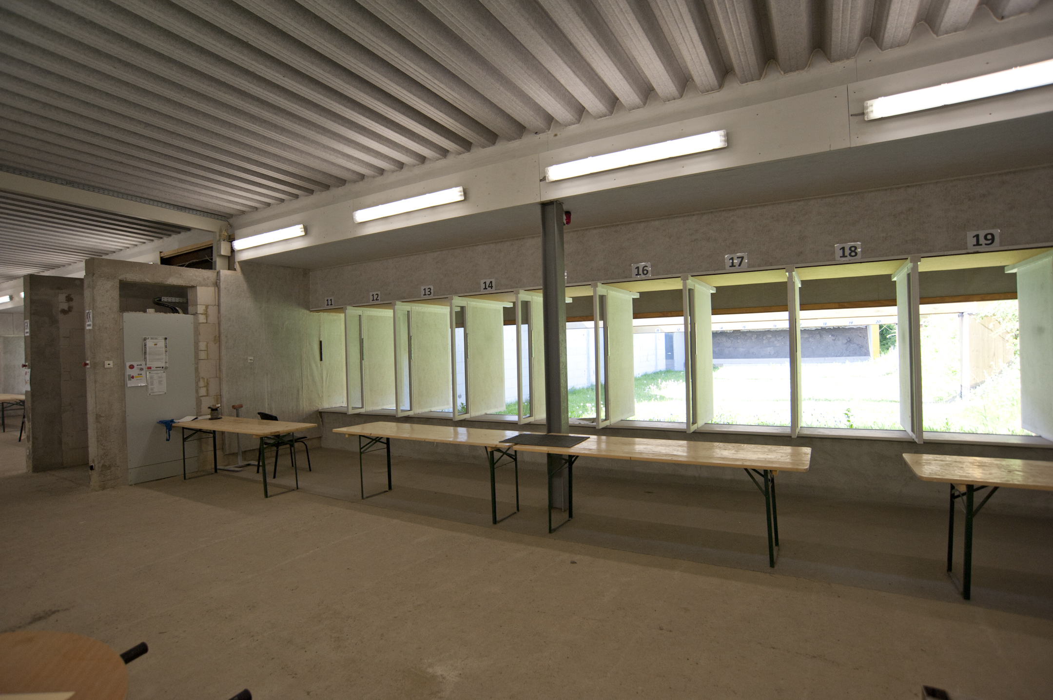 Im Vordergrundmittig befinden sich je zwei mal 10 Stände für 25 Meter Distanzen.